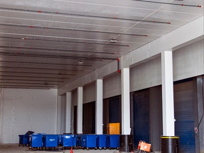 I første etasje er det installert et overrislingsanlegg. På grunn av frostfare i de åpne hallene ble det valgt et såkalt tørranlegg hvor rørene er fylt med luft, og ikke vann.